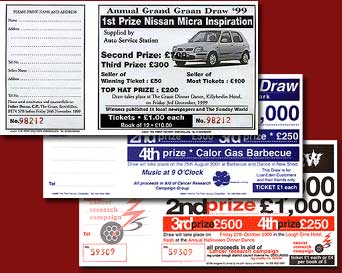 Don't depend on the luck of the draw. You'll sell more tickets if they are well designed and colourfully printed. What looks well--sells well!